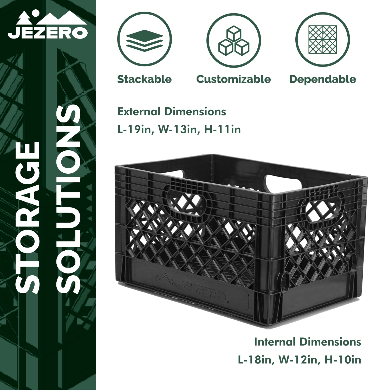 Designed for heavy-duty performance, the JEZERO® crate excels indoors and out. Use it as a kayak or fishing crate, a truck-bed or trunk organizer, or for boat deck storage. Its rugged plastic withstands daily use while offering excellent versatility—from hauling tools and groceries to storing garden supplies or camping essentials. Available in multiple sizes, JEZERO® milk crates provide smart, reusable storage for every task.