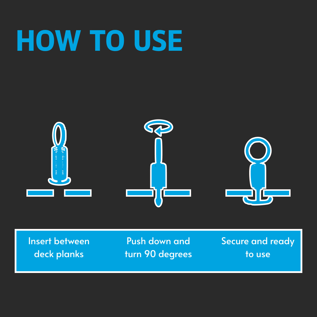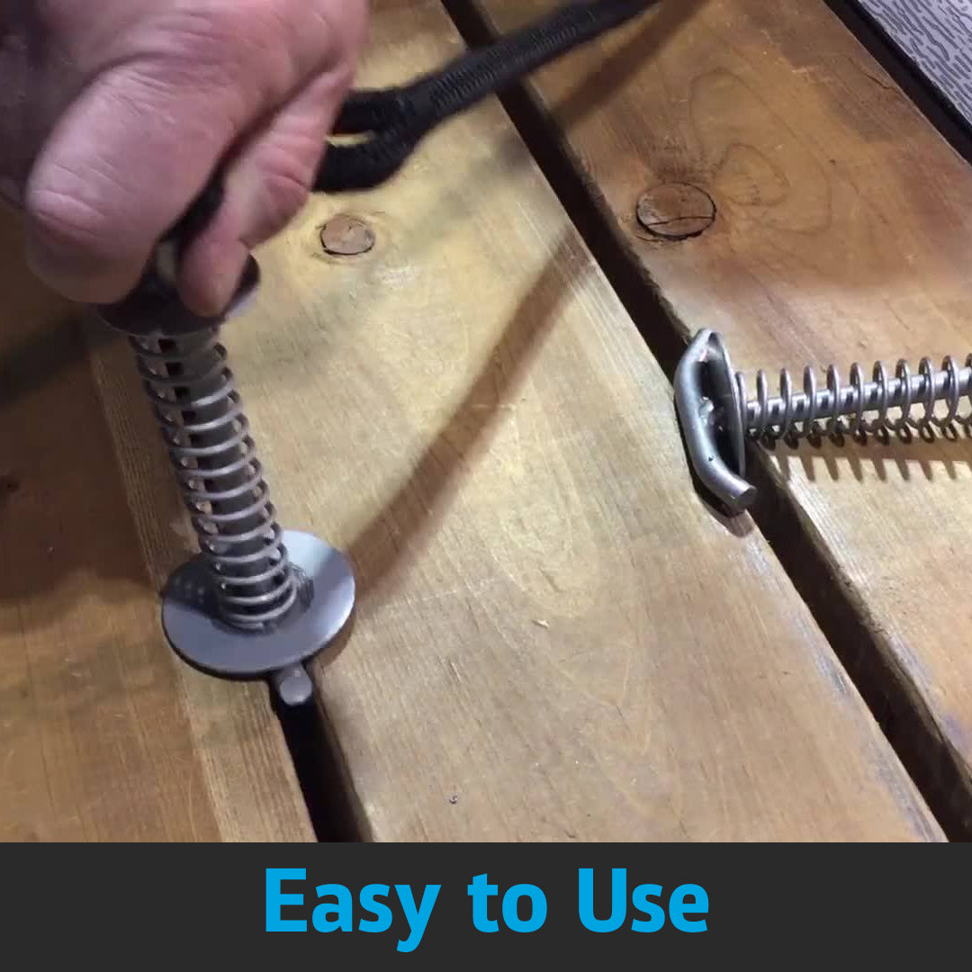 - QUICK. Its spring design allows for rapid deployment; simply insert it between two dock planks, press down, and turn 90 degrees to secure.