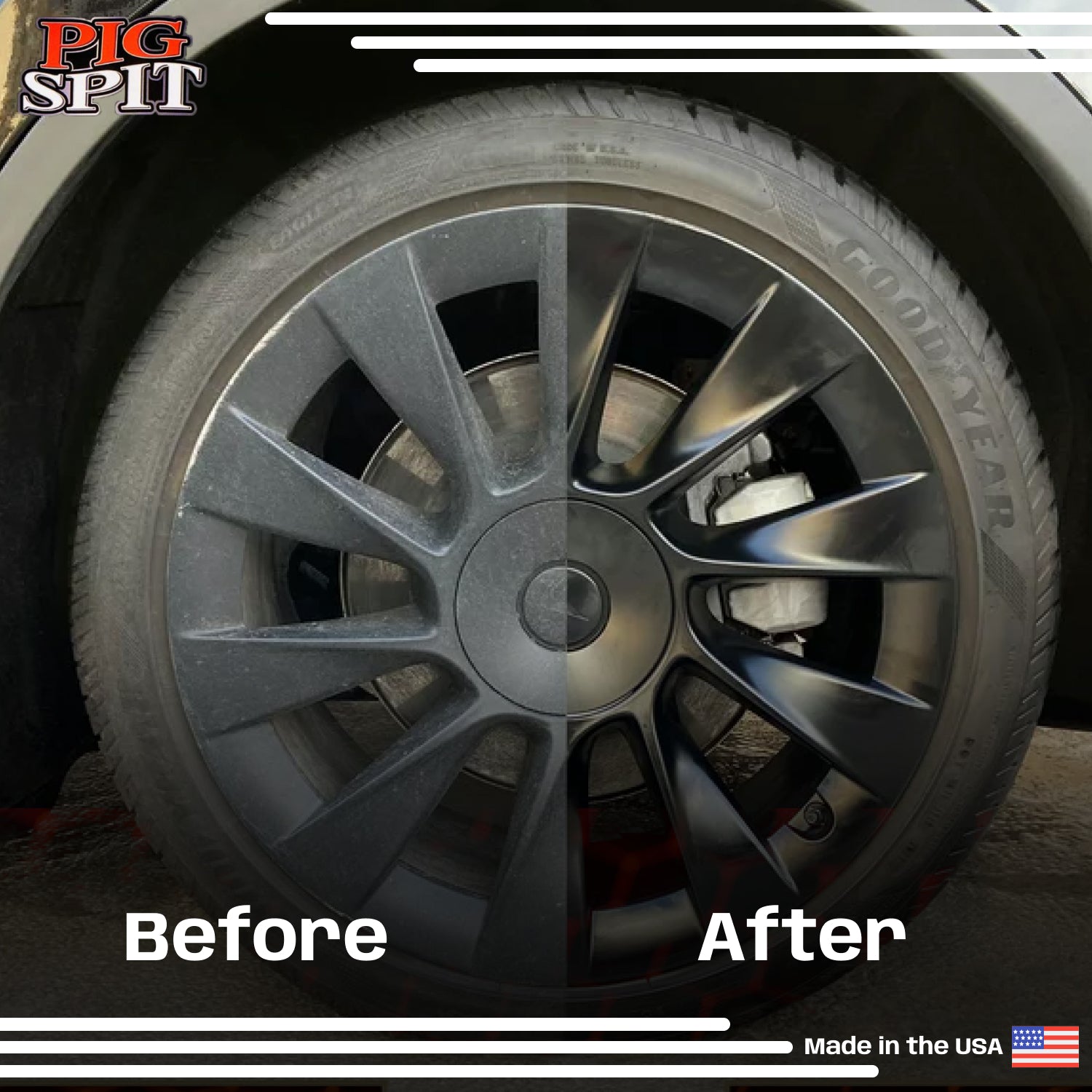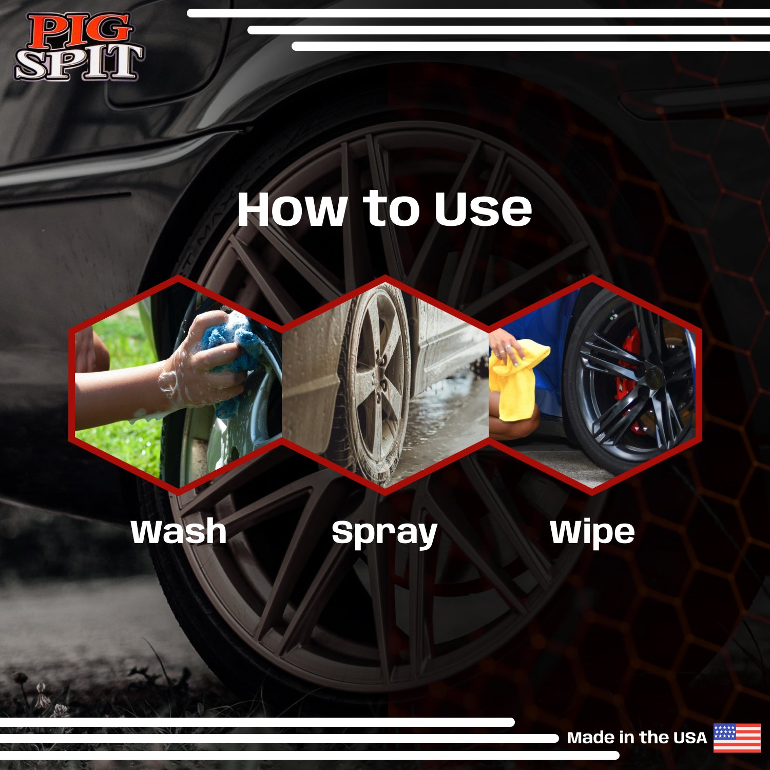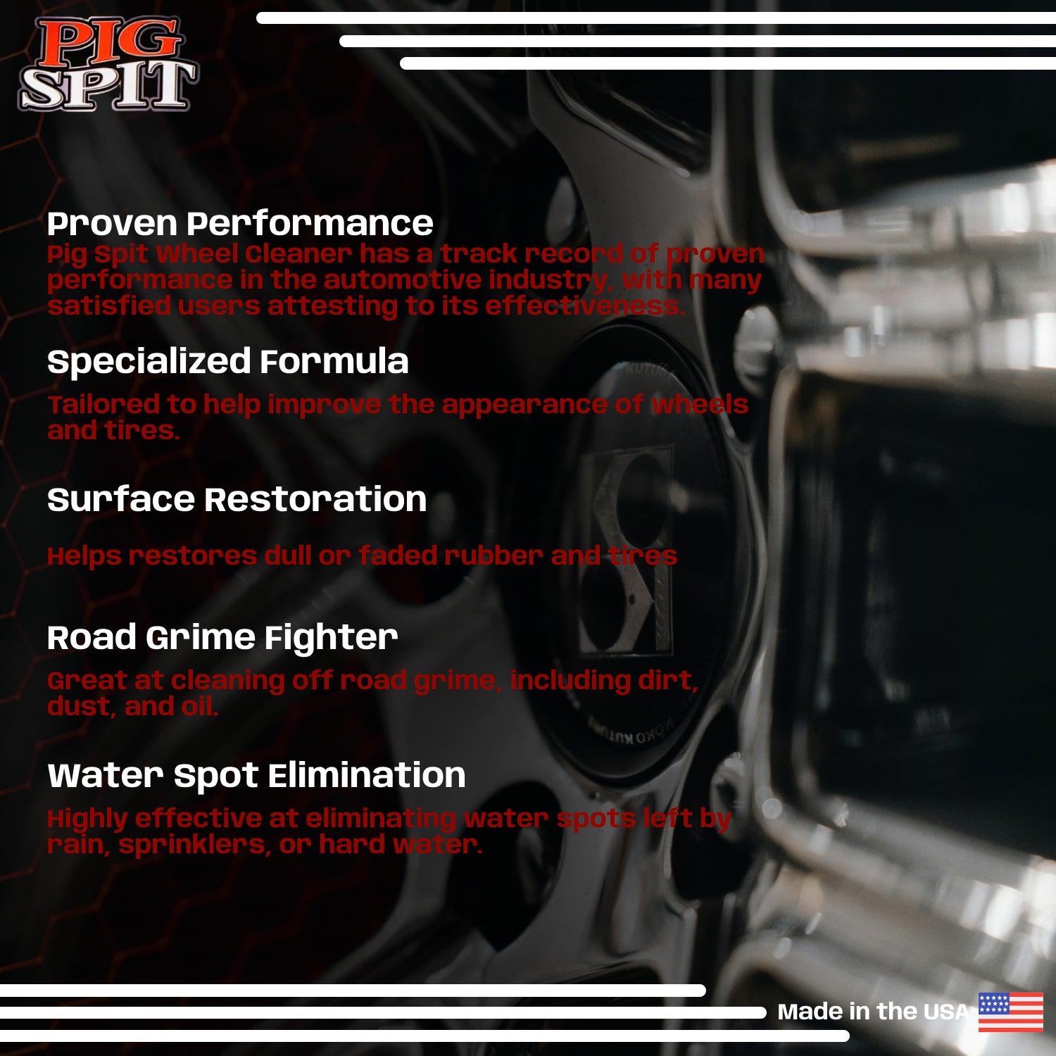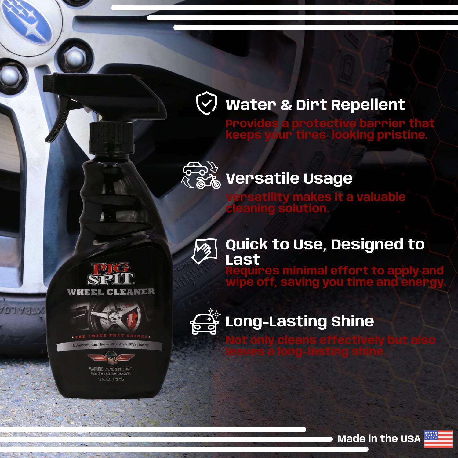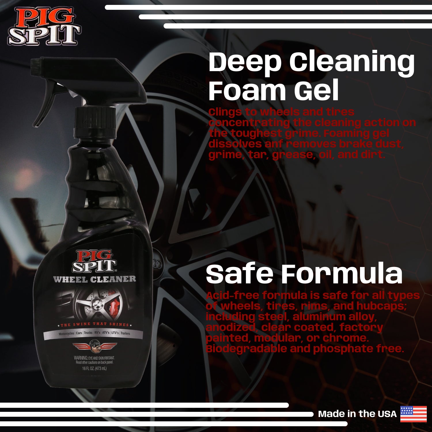 Pig Spit Wheel Cleaner is your go-to solution for restoring the shine and cleanliness of wheels on motorcycles, cars, trucks, RVs, boats, ATVs, snow machines, and more. Designed with a powerful yet gentle formula, Pig Spit effectively removes brake dust, road grime, and dirt buildup without harming wheel surfaces.